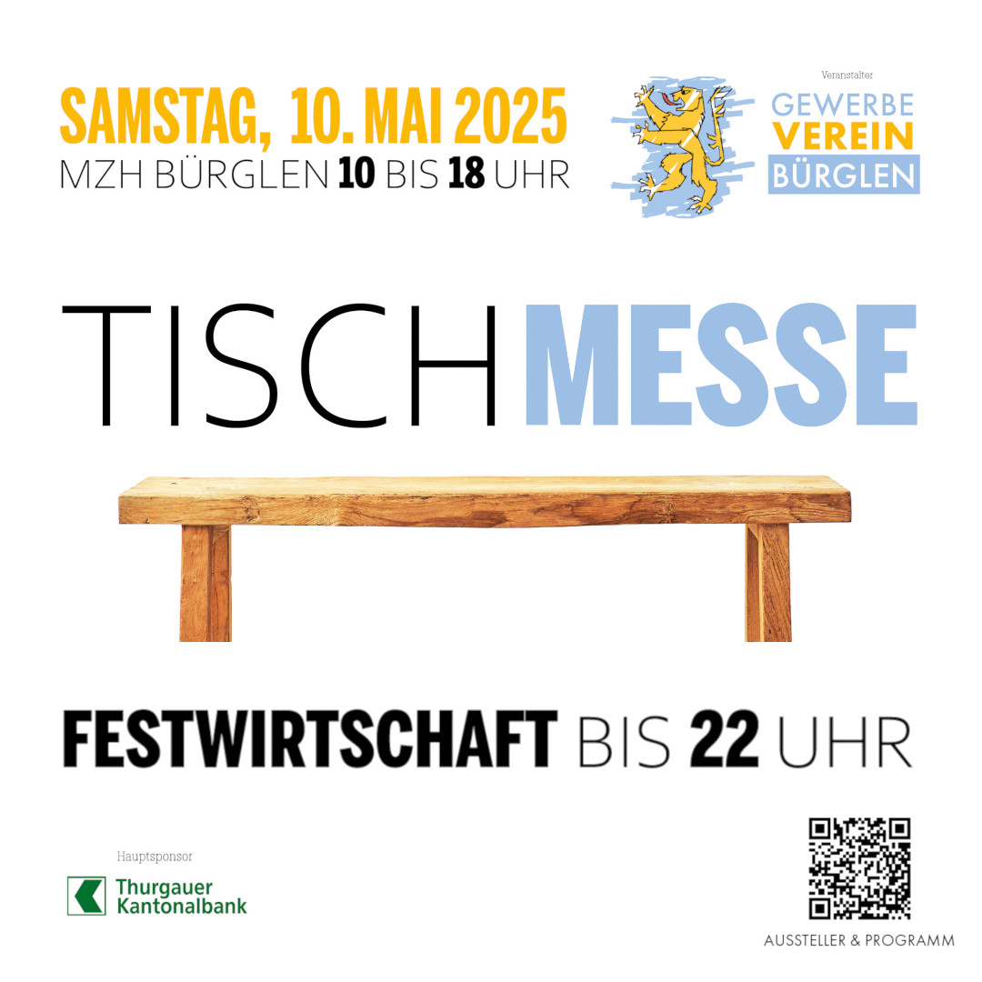 Wir sind dabei an der Tischmesse in der Mehrzweckhalle in Bürglen und freuen uns auf Ihren Besuch! KommentarnavigationZurückVorheriger Beitrag:Betriebsferien vom 21.12.2024 bis 5.1.2025NächstesNächster Beitrag:Sommeranlass am 21. Juni – Fussballgolf in Müllheim